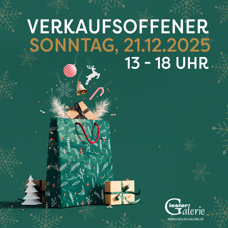 Ob spontaner Geschenk-Run, Outfit-Mission oder gemütliches Bummeln durch eure Lieblingsshops – bei uns findet ihr alles, was eure Feiertage ein bisschen schöner macht. Nutzt die Extra-Öffnungszeit, gönnt euch eine kleine Pause vom Vorweihnachtschaos und lasst euch von der festlichen Atmosphäre in der Giesler Galerie mitreißen.